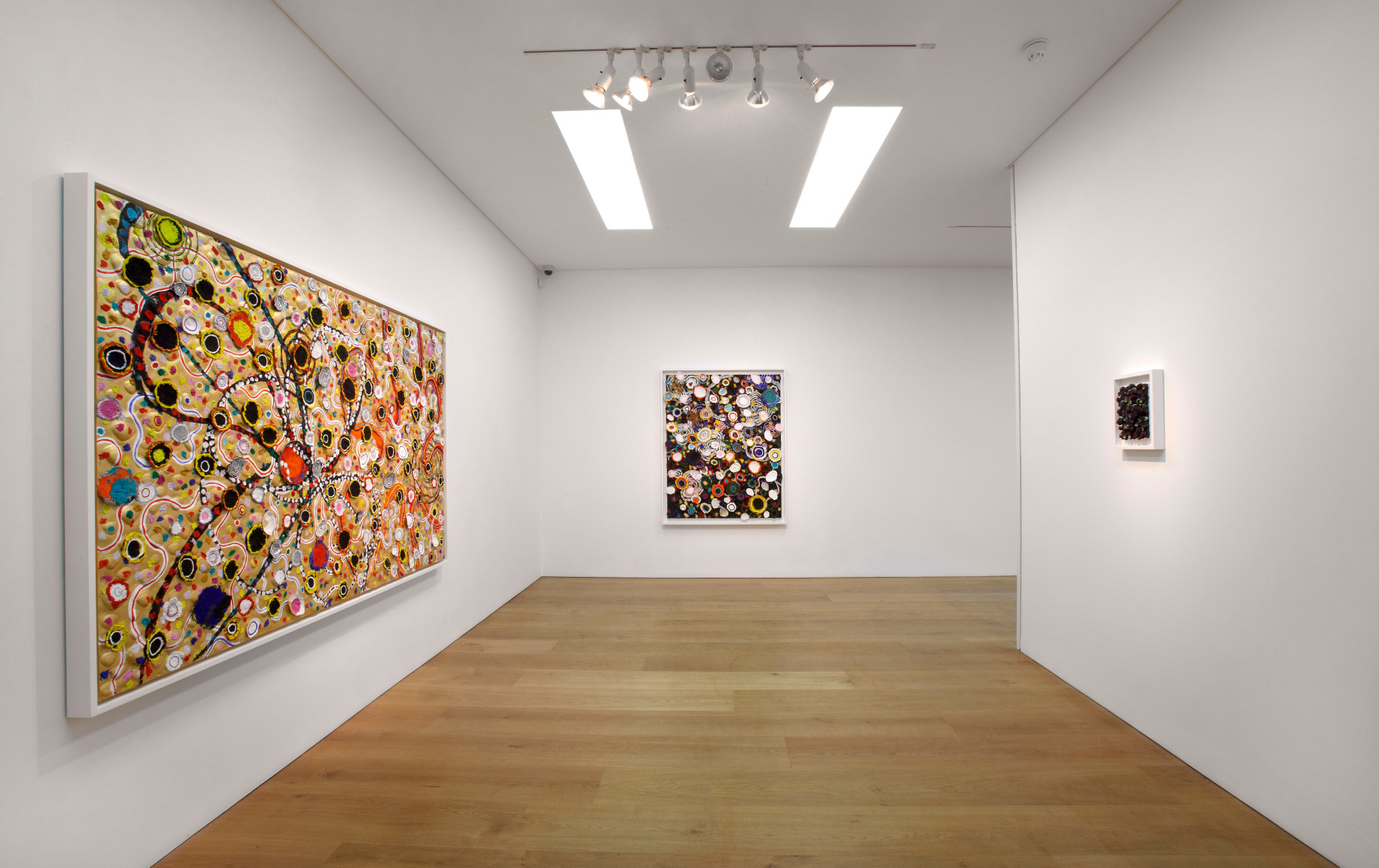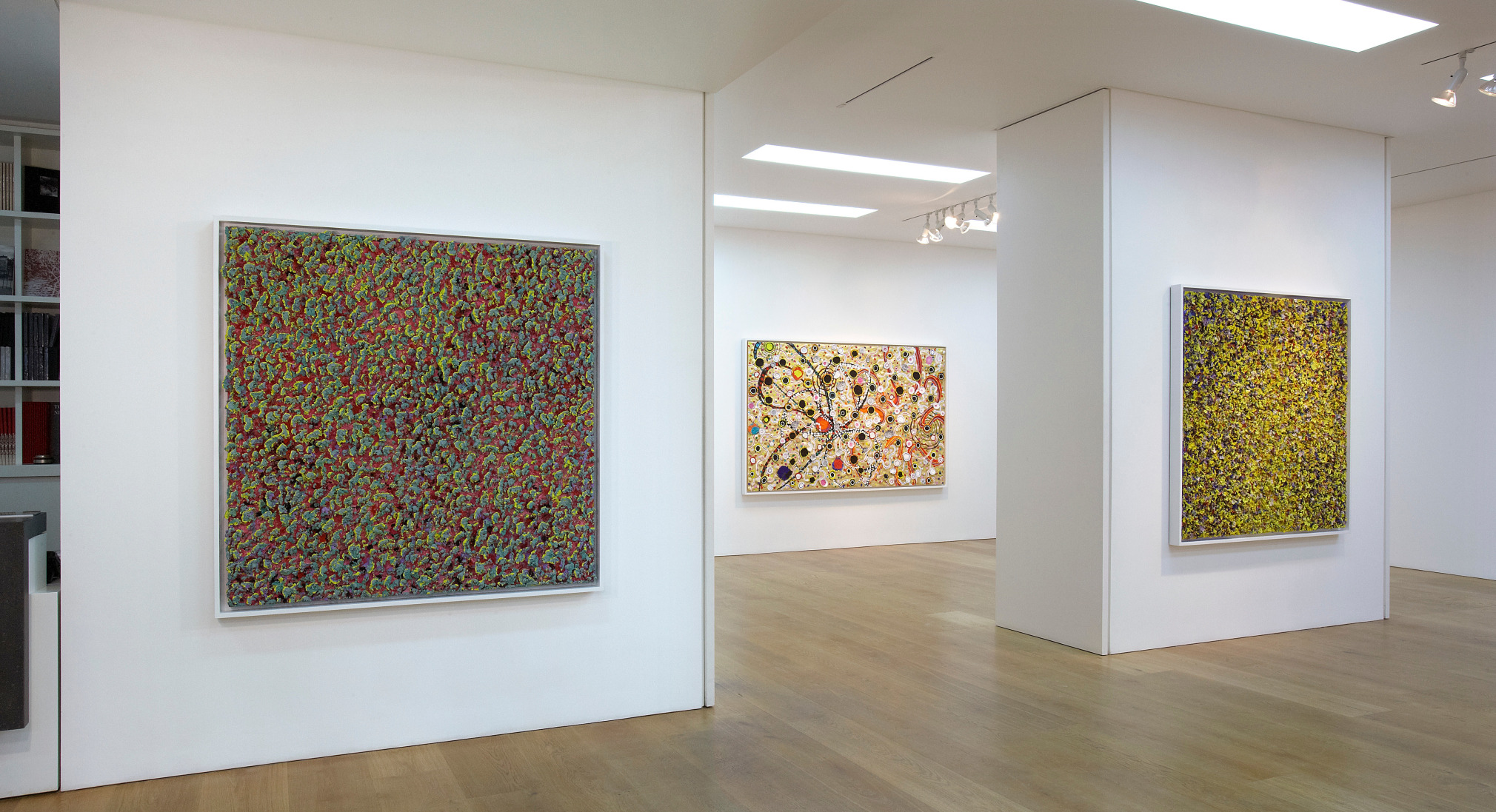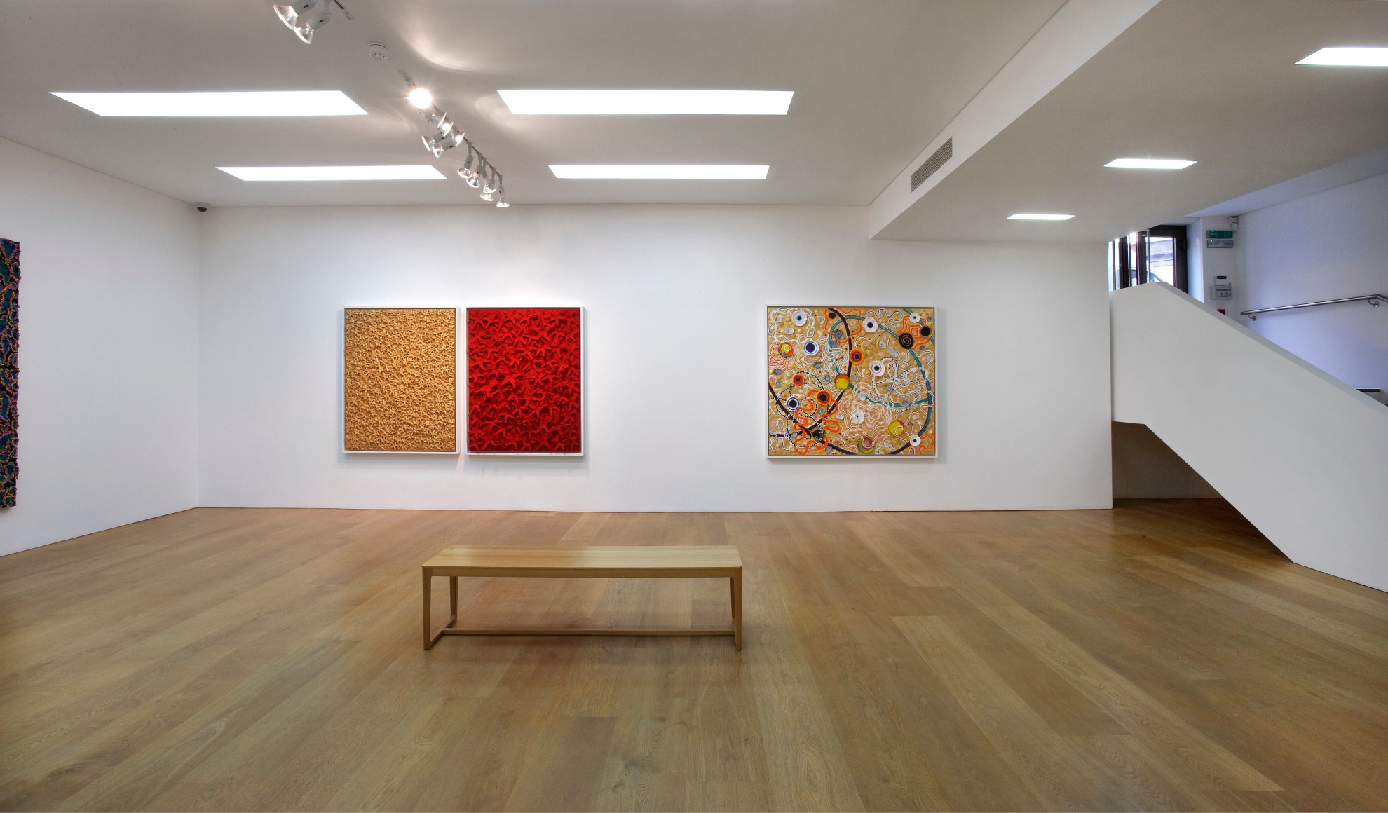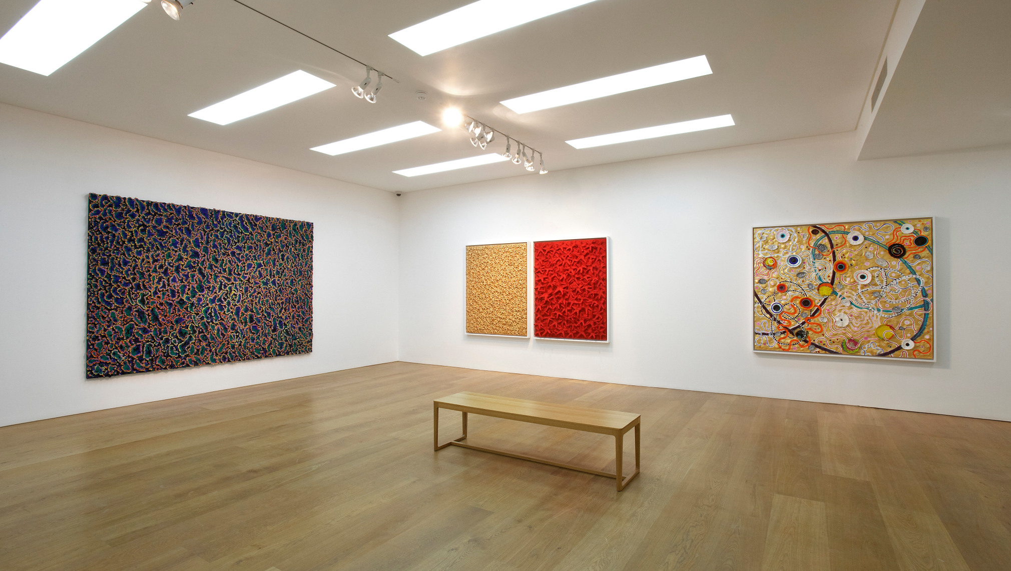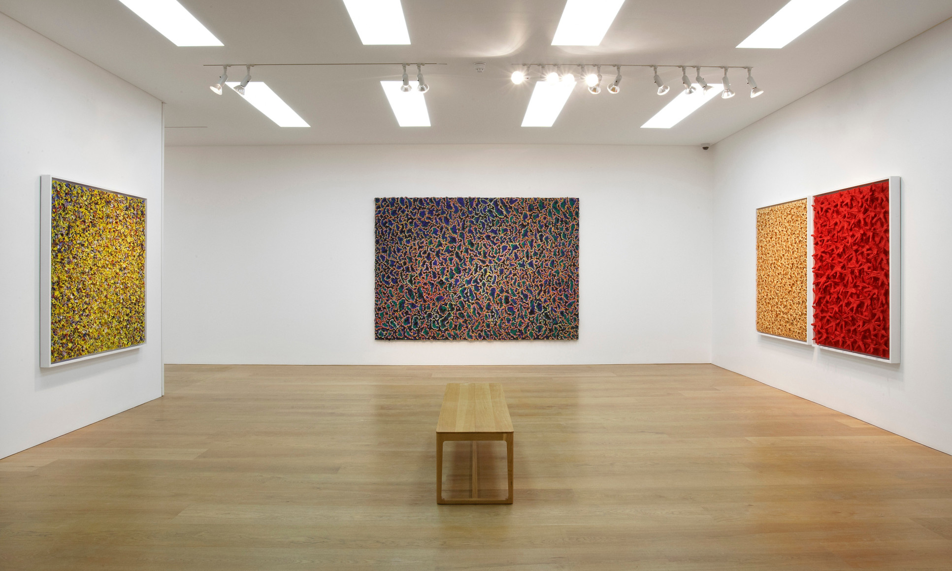 Ben Brown Fine Arts is pleased to announce the gallery’s first exhibition of works by Nabil Nahas, widely considered to be the most distinguished Lebanese artist working today. The exhibition is the artist’s first in London since his major museum retrospective at the Beirut Exhibition Center in June 2010. Nahas is renowned for his mastery of colour and texture in his atmospheric, layered paintings. The works in the exhibition display his characteristic textured treatment of the painted surface, built with layer upon layer of thickly encrusted acrylic paint mixed with pumice and often finished in vivid colours. By reiterating one singular form, the artist reflects the micro processes of nature, conjuring notions of spontaneous growth and evolution of organic life. “I am not what you would describe as a strictly ‘abstract’ painter, I am looking at organic forms, repeating and conjuring the minute parts of nature again and again.” Nahas reconciles the opposites of ideal geometry with the inconsistencies of the natural world’s ‘perfect geometry.’ Nahas has demonstrated a high level of pictorial innovation throughout his career, constantly employing a critical attitude to his work that has resulted in regular departures in his approach. As well as drawing upon the geometry of nature, Nahas also references Islamic traditions in his work, particularly its abstract geometric and chromatic qualities. When employing a rich gold colour to create his interlocking patterns the artist hints at Byzantine mosaics and coffered ceilings. Many of the works in the exhibition incorporate paint chips, which are a by-product of his larger paintings and are effectively detritus from the studio floor which has been recycled. In this sense, they are ready-mades of the artist’s own making and reveal previously invisible processes employed in larger paintings, specifically the underside of acrylic-pumice mixtures built up upon the painted surface. Inventively appropriated as the building blocks for individual paintings, the petal like pieces lend each work a highly sculptural quality, projecting concentric rings of vivid colour into the viewer’s space. The same focus on texture is apparent in the artist’s Starfish series which incorporate echinoderms into the painted surface in his signature tessellated and interlocking pattern style. About Nabil Nahas Nabil Nahas was born in Lebanon in 1949 and grew up in Cairo and Beirut. The artist attended university in the United States, earning a BFA from Louisiana State University at Baton Rouge in 1971 and an MFA from Yale University in 1973. Encounters with contemporary painters at Yale influenced Nahas to move to New York after graduation. He has exhibited extensively in the United States and abroad over the last three decades. 2010 marked Nahas’ first major museum retrospective. Curated by the eminent American art critic Vincent Katz, it was a double honour for being the inaugural exhibition at the Beirut Exhibition Center. His work is included in the collection of the Metropolitan Museum of Art amongst other international museums.